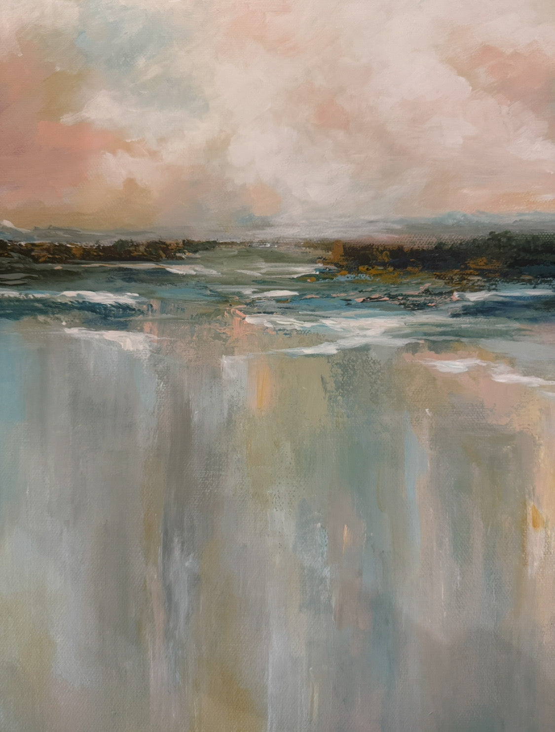 "Ocean Serenity" is a stunning 10x12 acrylic canvas piece that captures the serene beauty of the ocean. Its use of acrylic lends a vibrant touch to the calming blues of the sea, making it an ideal piece for any space in need of a peaceful atmosphere.